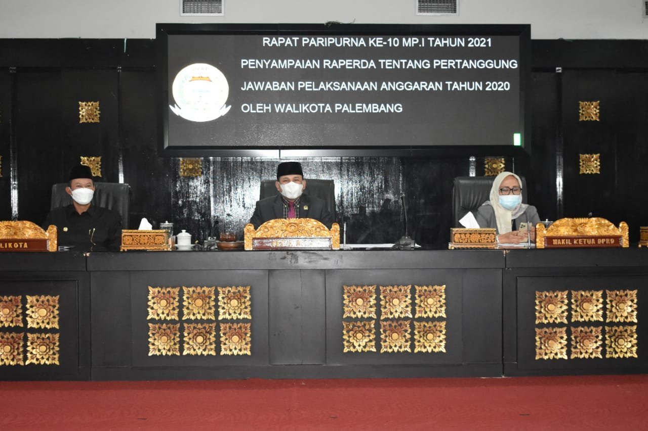 Palembang | Walikota Palembang, H Harnojoyo sampaikan Rancangan Peraturan Daerah (Raperda) tentang pertanggungjawaban pelaksanaan anggaran Tahun 2020.