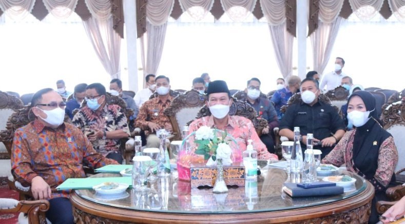 Palembang | Walikota Palembang Harnojoyo beserta jajaran menyambut Silaturahmi dan Rapat Kerja Anggota Dewan Perwakilan Rakyat Republik Indonesia Komisi V (Ir. H. Eddy Santana Putra, MT) dan Anggota DPR RI Komisi IV (Hj. Renny Astuti, S.Pn) terkait Rencana Pembangunan Tahun 2022 di Rumah Dinas Walikota Jl. Tasik No 12 Kota Palembang. Selasa, (3/9/2021).