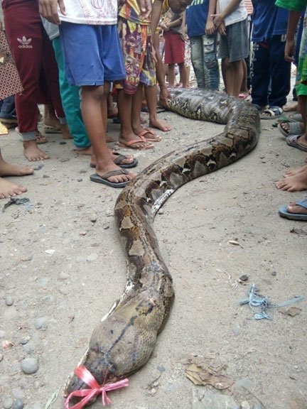 Manto (35) warga desa betung, yang berhasil menjerat ular tersebut mengatakan, dirinya tidak menyangka bisa menangkap ular sebesar itu yang panjangnya mencapai 10 Meter dengan berat 100kg. “Saya dan teman saya memang sudah biasa menangkap ular tapi baru kali ini kami berhasil menangkap ular yang sangat besar,”terangnya.