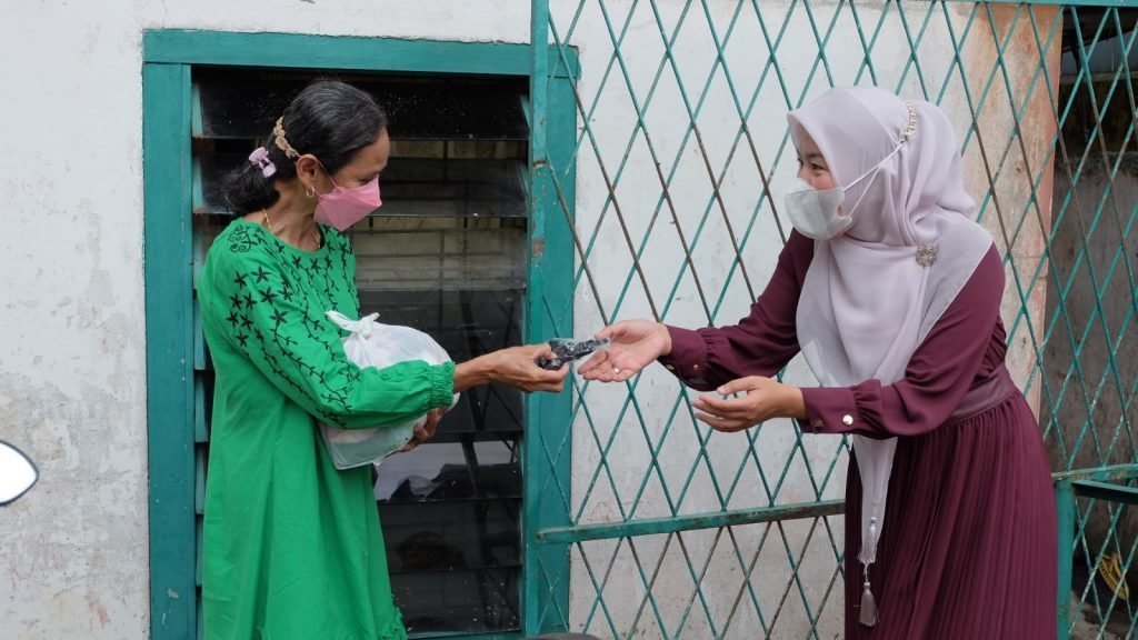 PALEMBANG | Wakil Walikota Palembang, Fitrianti Agustinda secara pribadi merogoh kocek sendiri untuk berbagi puluhan paket sembako di kawasan Lorong Bintara Kelurahan Kuto Batu Kecamatan Ilir Timur 3, tepat pada perayaan Hari Raya Idul Adha 1442 H (20/7/2021).